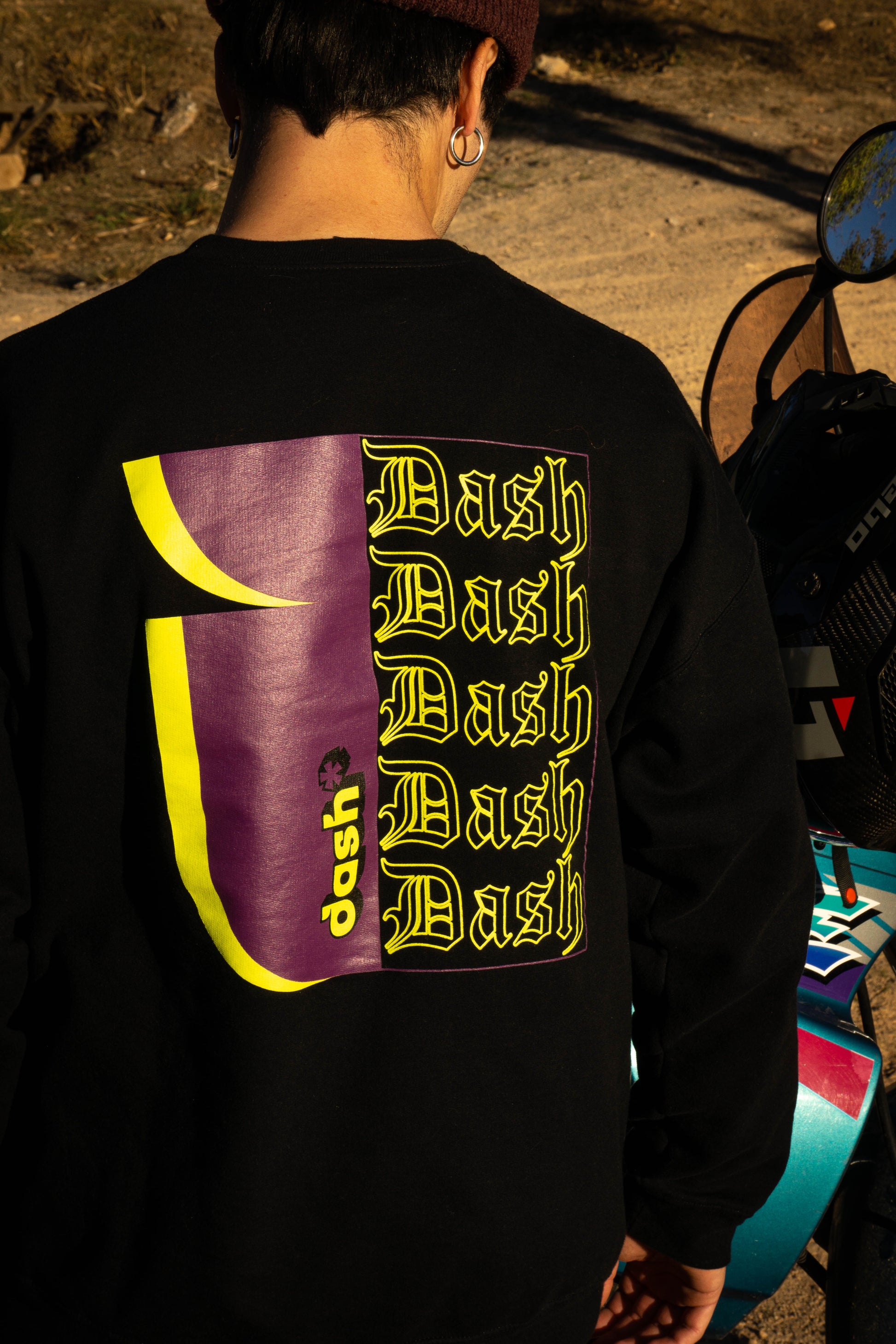 Rep your Dash pride with the Crew Neck Hoodie that combines comfort, style, and the bold colors of our brand. Featuring a striking Dash design on the back in our signature green and purple, this hoodie is built to make a statement while keeping you cozy and protected. Whether you're out on the street, at the track, or hanging with friends, this hoodie lets you wear your Dash identity with confidence.